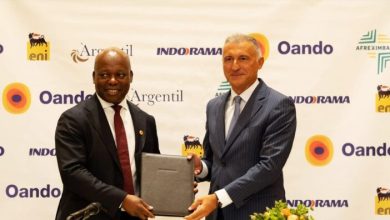 L-R: Wale Tinubu, CON, Group Chief Executive, Oando PLC and Guido Brusco, Chief Operating Officer, General Director of Natural Resources,…