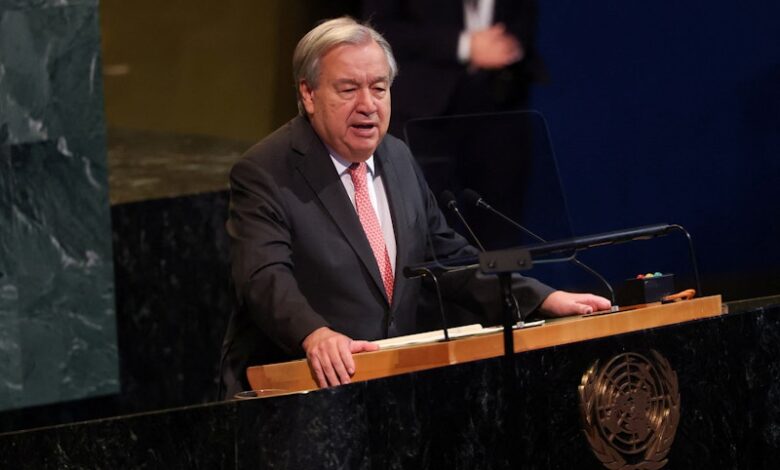 United Nations Secretary-General António Guterres said the body’s principles are facing an unprecedented assault, citing wars, rising hunger, and climate chaos.
